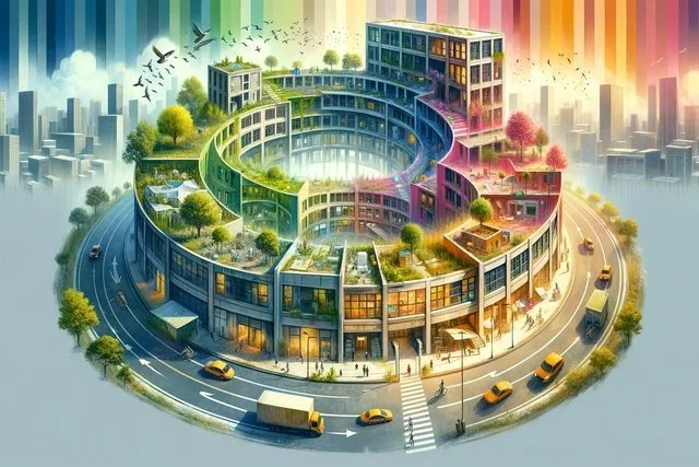 Taking a circular approach, a whole-of-life building assessment takes into account the footprint, construction, operational emissions, structural sustainability, and maintenance of a building over its lifetime. Image: Xiaohu Yan, Sandra Baggerman, Cas Esbach via Midjourney